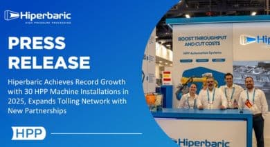 Hiperbaric, the global leader in High Pressure Processing (HPP) equipment for the food and beverage industry, announces record growth with 30 HPP machine installations planned for 2025, adding 9,900-liters of processing capacity worldwide. The milestone year includes new tolling partnerships that expand HPP accessibility following a successful showcase at PACK EXPO Las Vegas 2025.