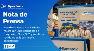 Hiperbaric, líder mundial en equipos de procesamiento a alta presión (HPP) para la industria alimentaria y de bebidas, anuncia un crecimiento récord con 30 instalaciones de máquinas HPP previstas para 2025, lo que supondrá un aumento de 9900 litros de capacidad de procesamiento en todo el mundo. Este año tan significativo incluye nuevas asociaciones de maquila que amplían la accesibilidad al HPP tras una exitosa presentación en la PACK EXPO Las Vegas 2025.