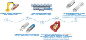 • Las bandejas se introducen en el recipiente de alta presión, que se llena de agua;